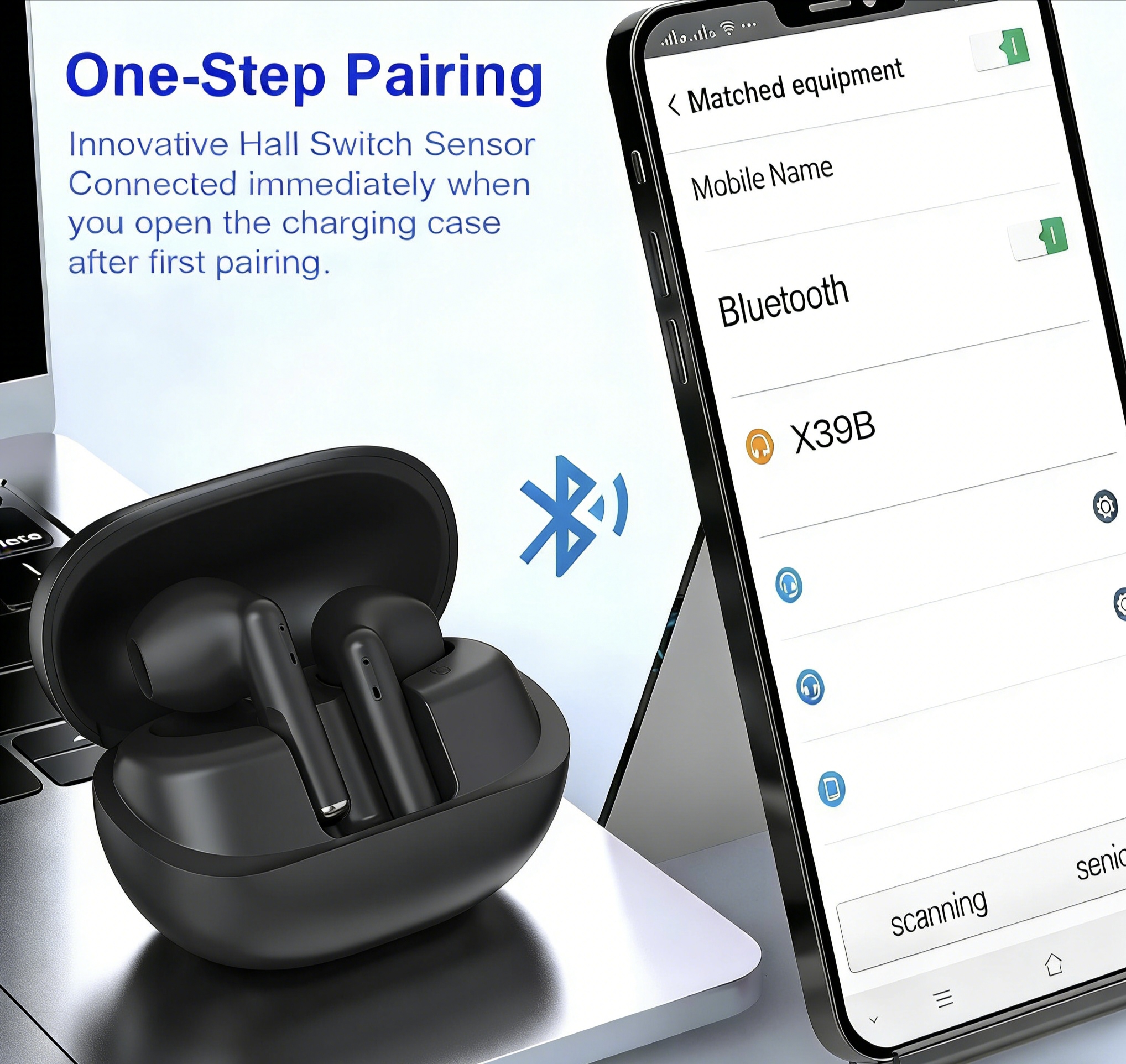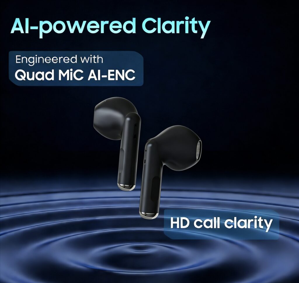 Quad mic ENC Bluetooth TWS, with hall switch, slide to adjust volume
