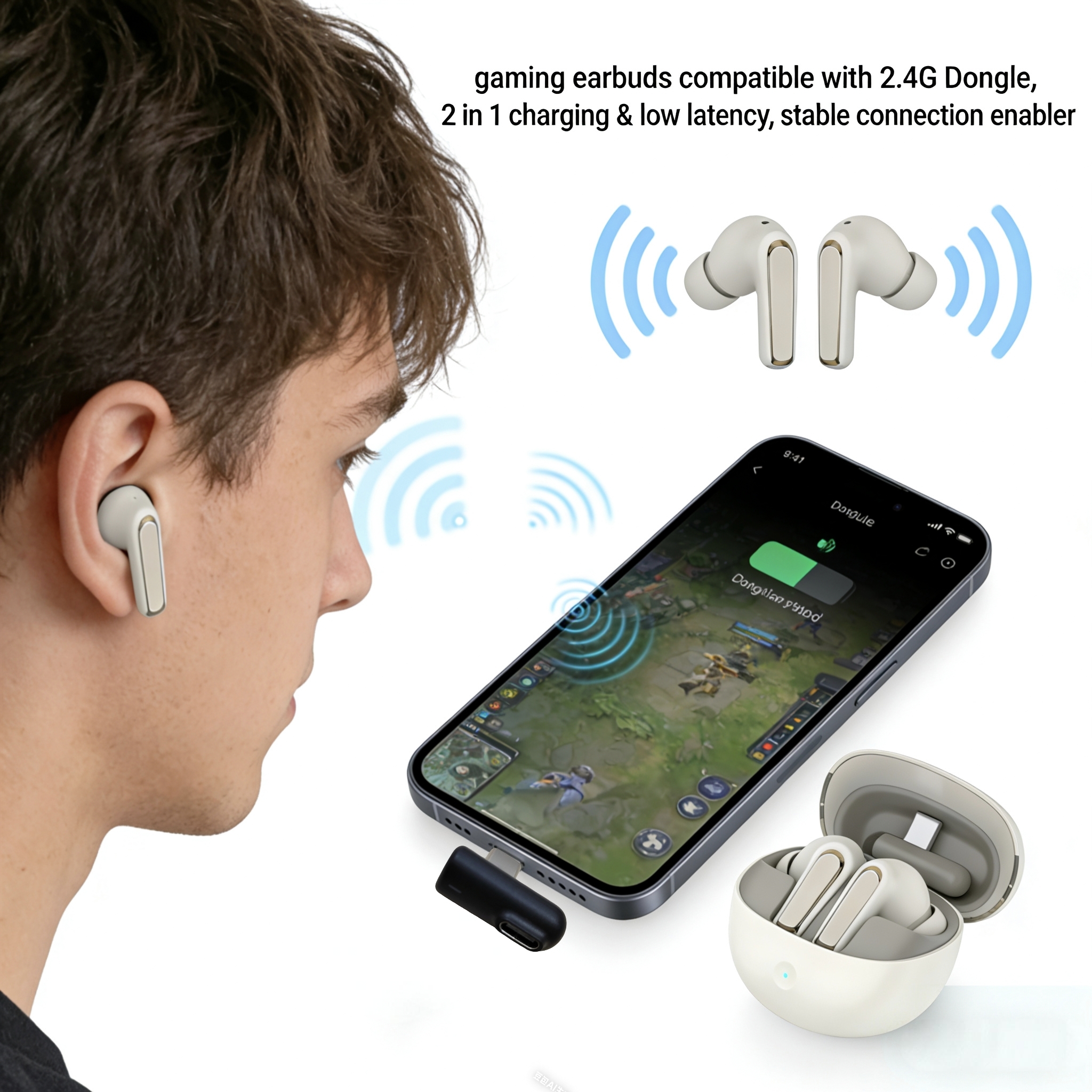 ANC GAMING TWS, 2.4GHz ultra-low latency transmission mode (with Dongle)